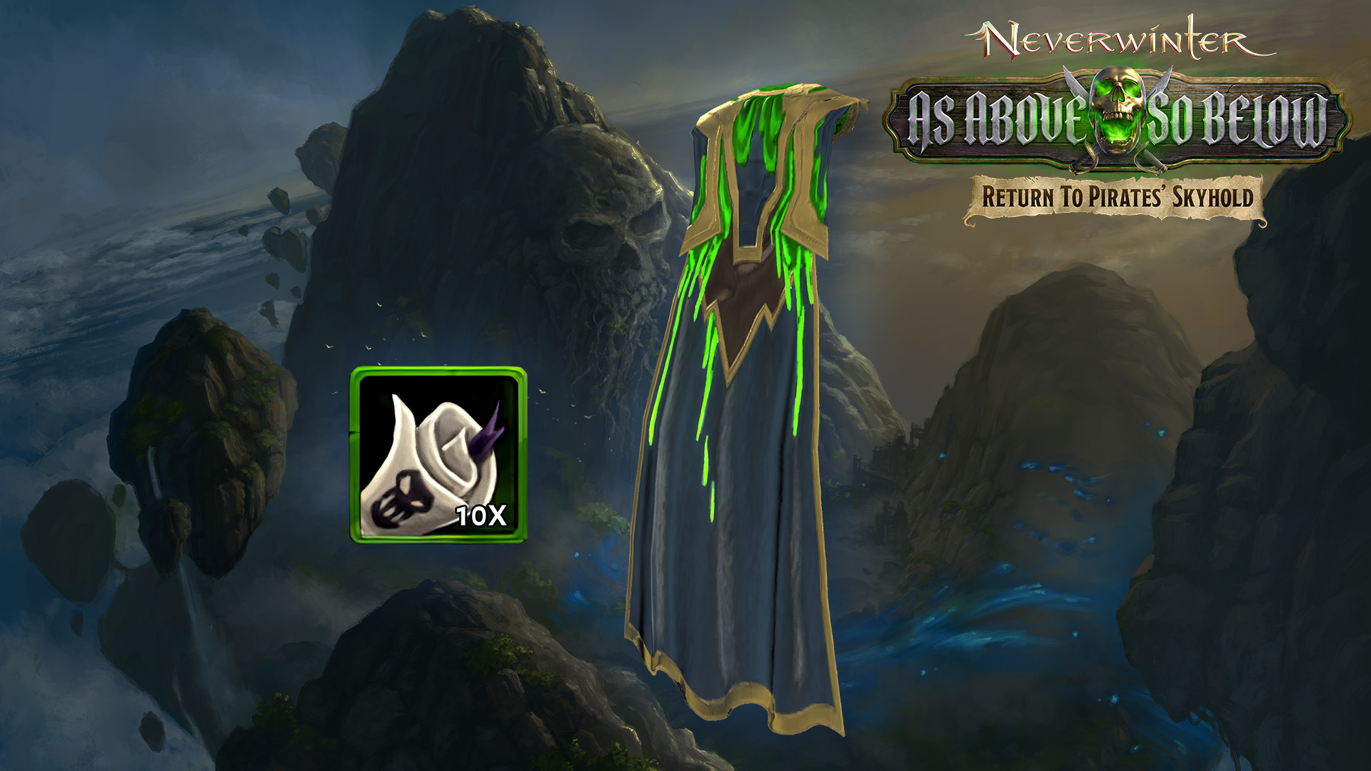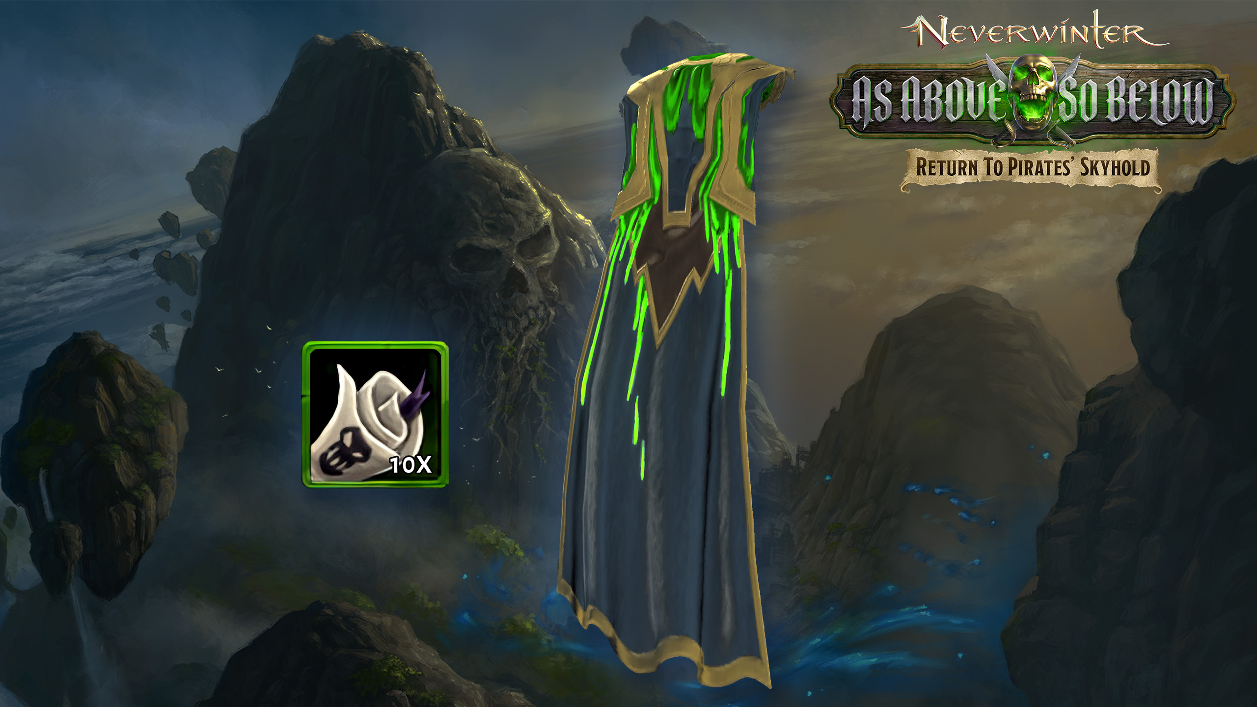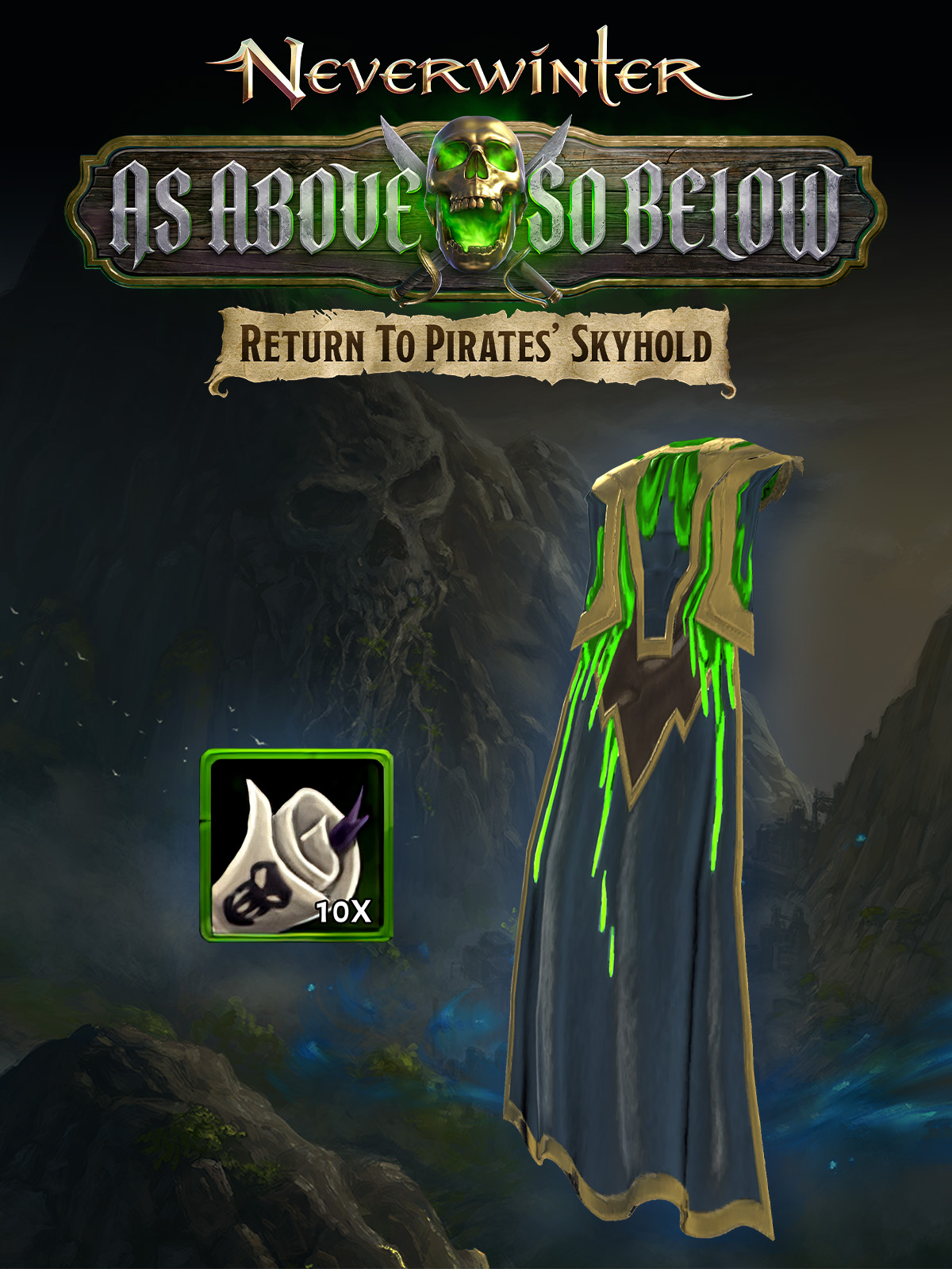 Return to the Pirates’ Skyhold and uncover the secrets of this accursed place with the help of your Epic exclusive Earth Rumbler Pack! This pack includes Title: Earth Rumbler, Cloak: Earth’s Mantle, and 10 Scrolls of Life.