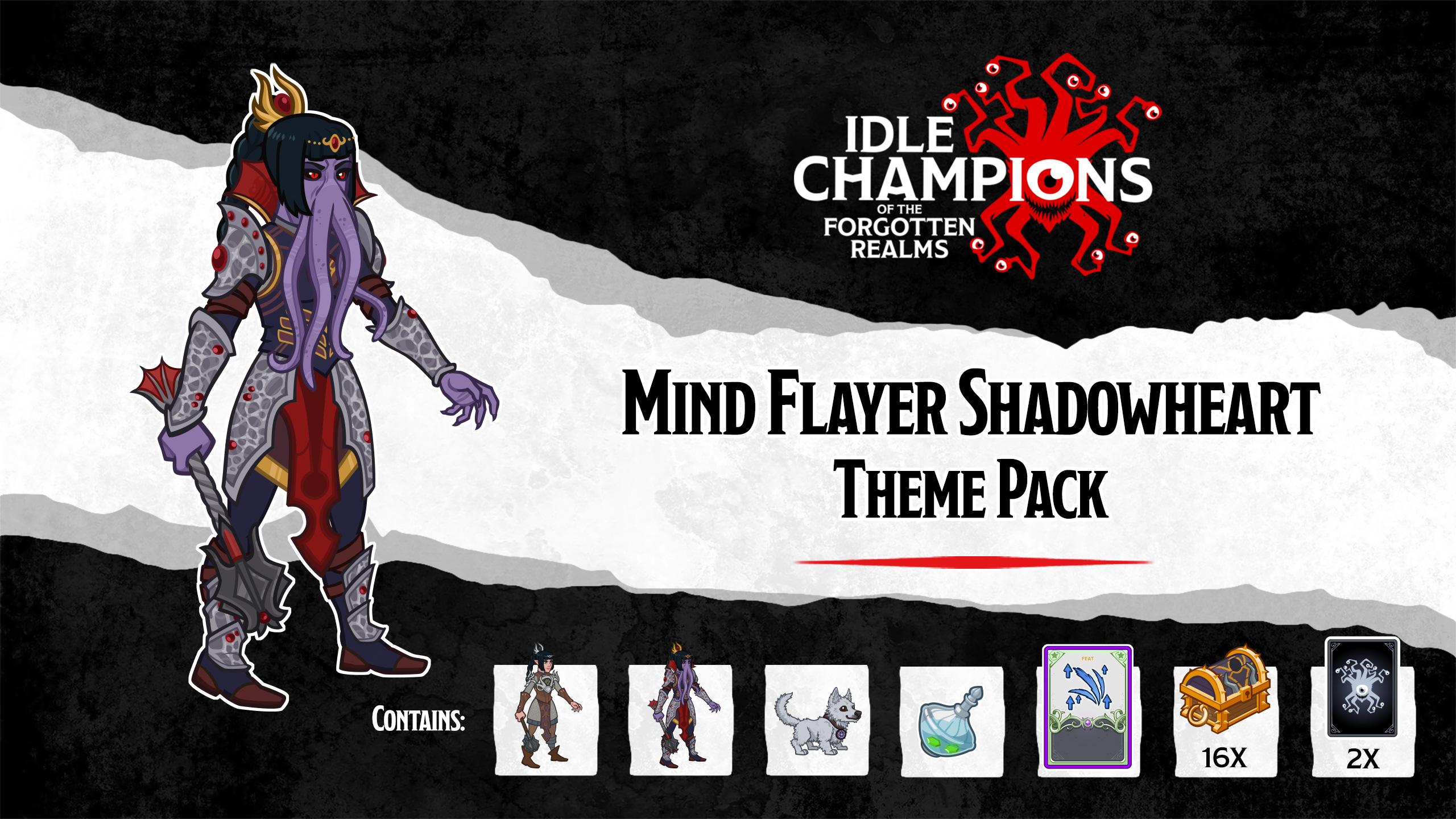 Theme packs contain a Champion unlock, chests, and an exclusive skin & feat for that Champion. They also contain a new familiar that you can assign to certain tasks, such as leveling up Champions, clicking the monsters, or using Ultimates!