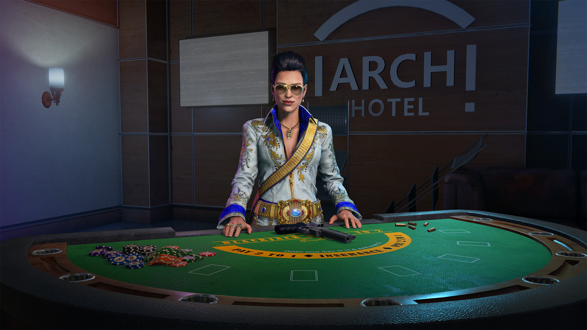 Deck your gear out in pure Sin City fashion with the Vegas skin pack! Featuring a glamorous Vegas outfit for Sara, along with 4 dazzling weapon skins, one for each weapon: 1911 Protector Pistol, PAC-15 Sporting Carbine, WASP-180 Defensive SMG, 1877 SBL Rifle
