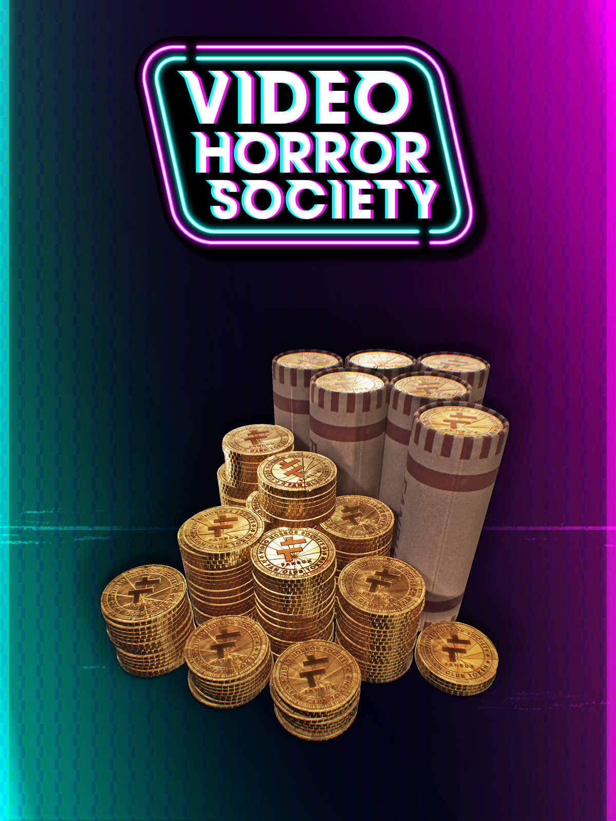 A dragon’s hoard of golden coins. Convert your quarters to 15,000 Fanbux, Video Horror Society’s bright and shiny in-game currency, and blow it all on cool cosmetics, sickening skins, terrifying traits and all the socks the store has to offer!