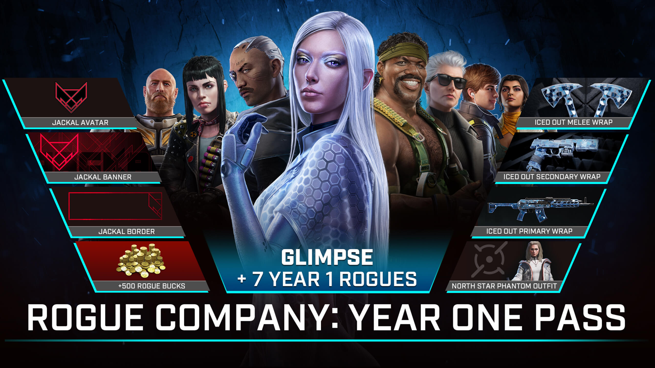 Unlock all Rogues released in Year One with this pack. Unlock Kestrel, Seeker, Mack, Switchblade, Runway, Cannon, Umbra, and Glimpse immediately.