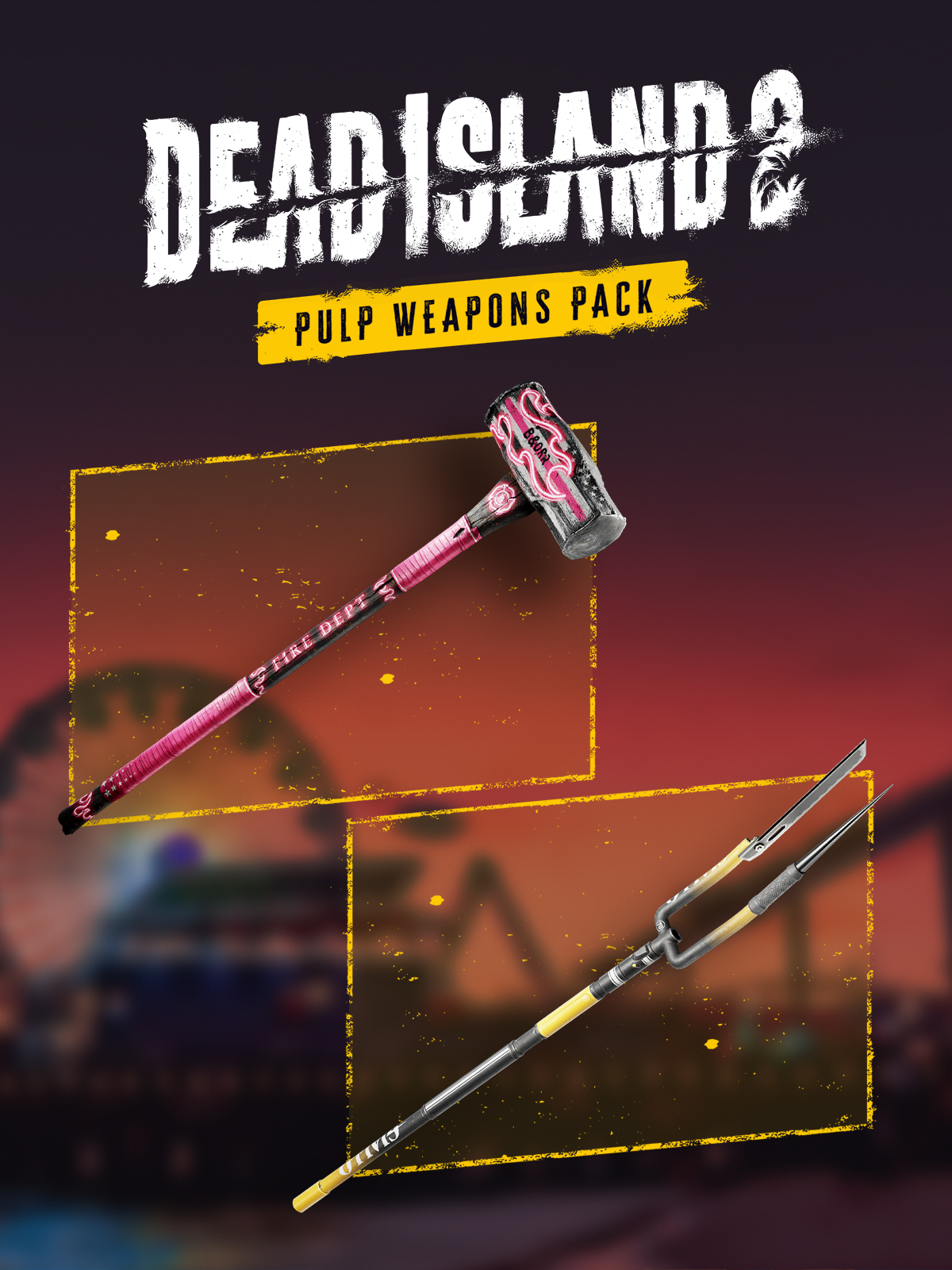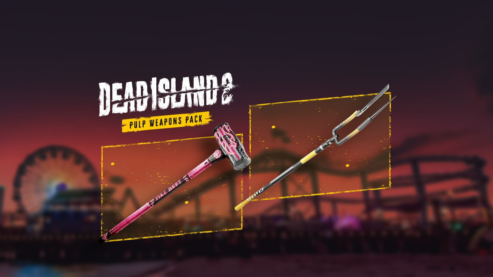 The Pulp Weapons Pack features two signature weapons that are sure to leave a lasting impression - the Homewrecker Sledge Hammer and the Eye Opener Pitchfork.