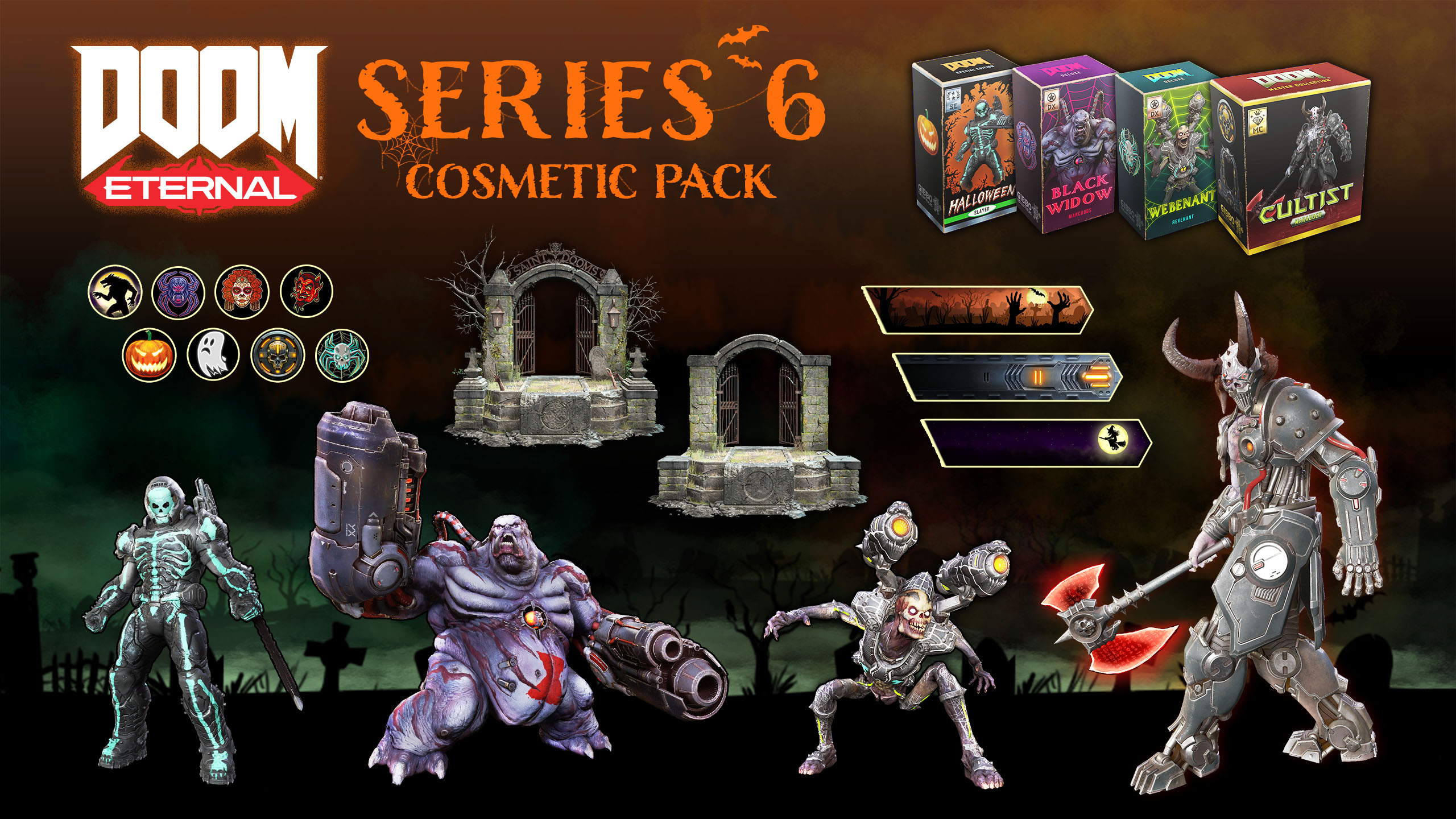 Missed out on DOOM Eternal’s Series Six event - Helloween 2020? Grab over 12 cosmetic items, including all the character and weapon skins, custom animations, icons and nameplates. Fight the hordes of Hell in style or show off in the campaign’s Photo Mode.