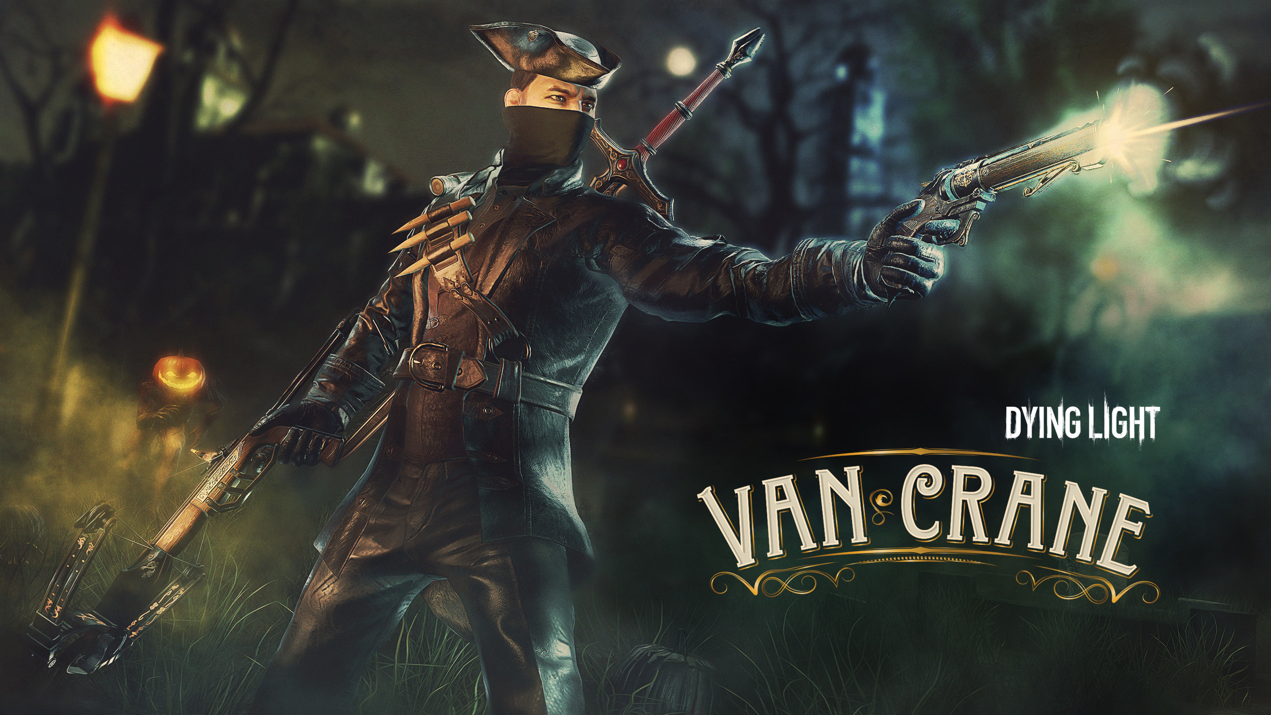 Though most seek shelter as the All-Hallows Eve arrives, Van Crane fears no monster. Your outfit, enchanted with blood, allows you to call any thrown one-handed weapon back. Venture out to slaughter beasts with a new set of weapons when they least expect it.