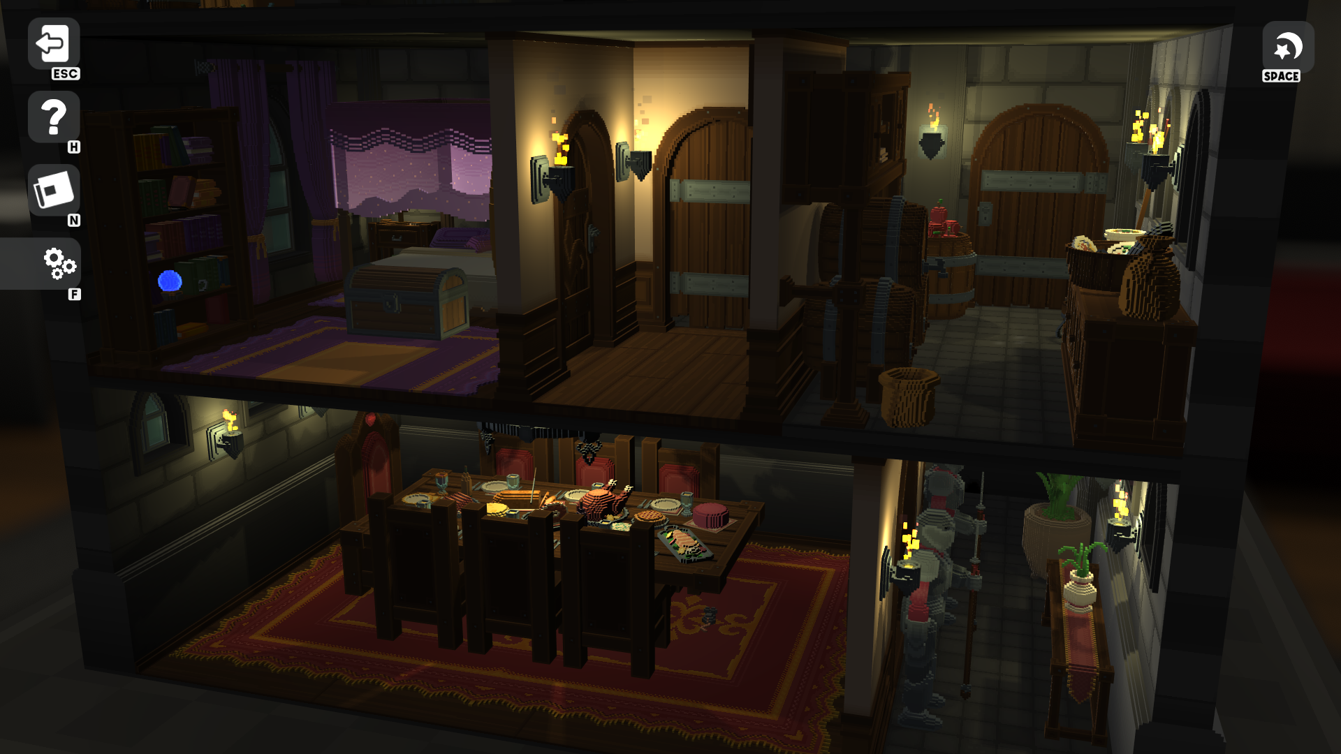 This expansion of DIORAMA BUILDER brings the diorama "MEDIEVAL CASTLE", which will allow you to assemble a complete Medieval Castle, with a royal bedroom, weapons room, prison, main hall, kitchen and everything with lots of details, such as armor, cannons, crossbows and more!