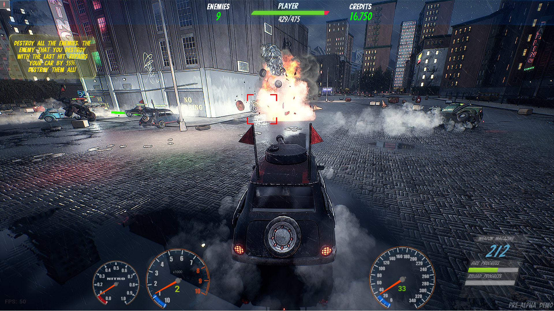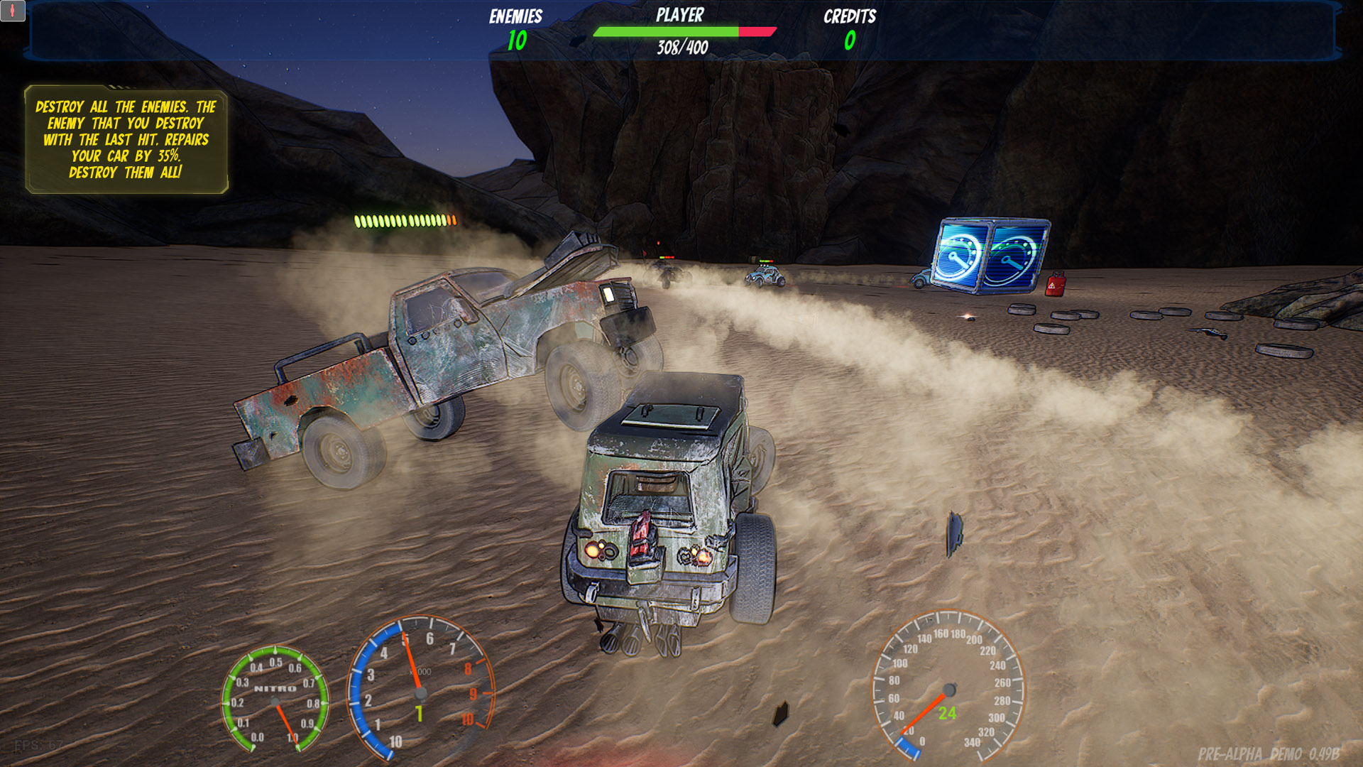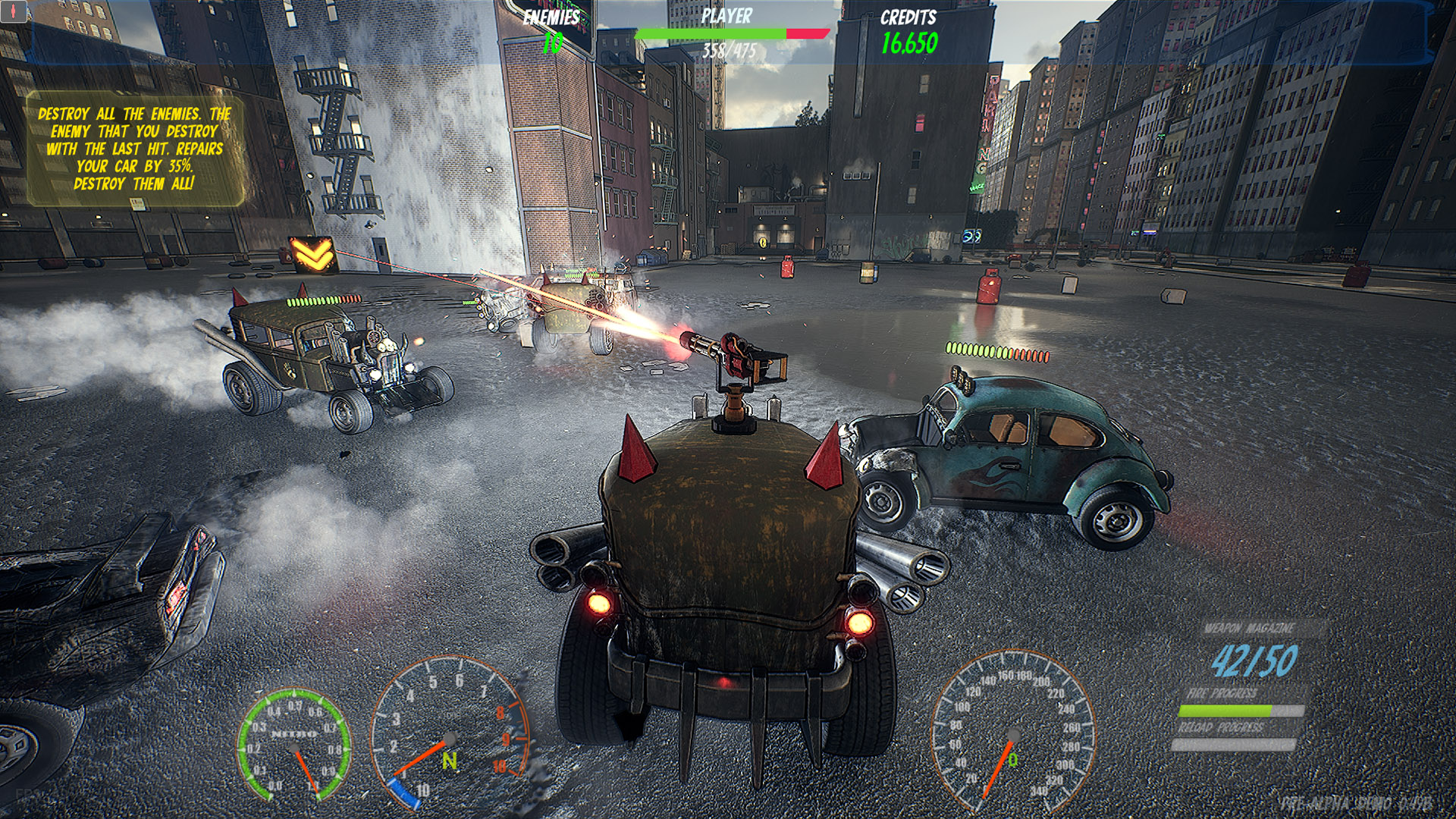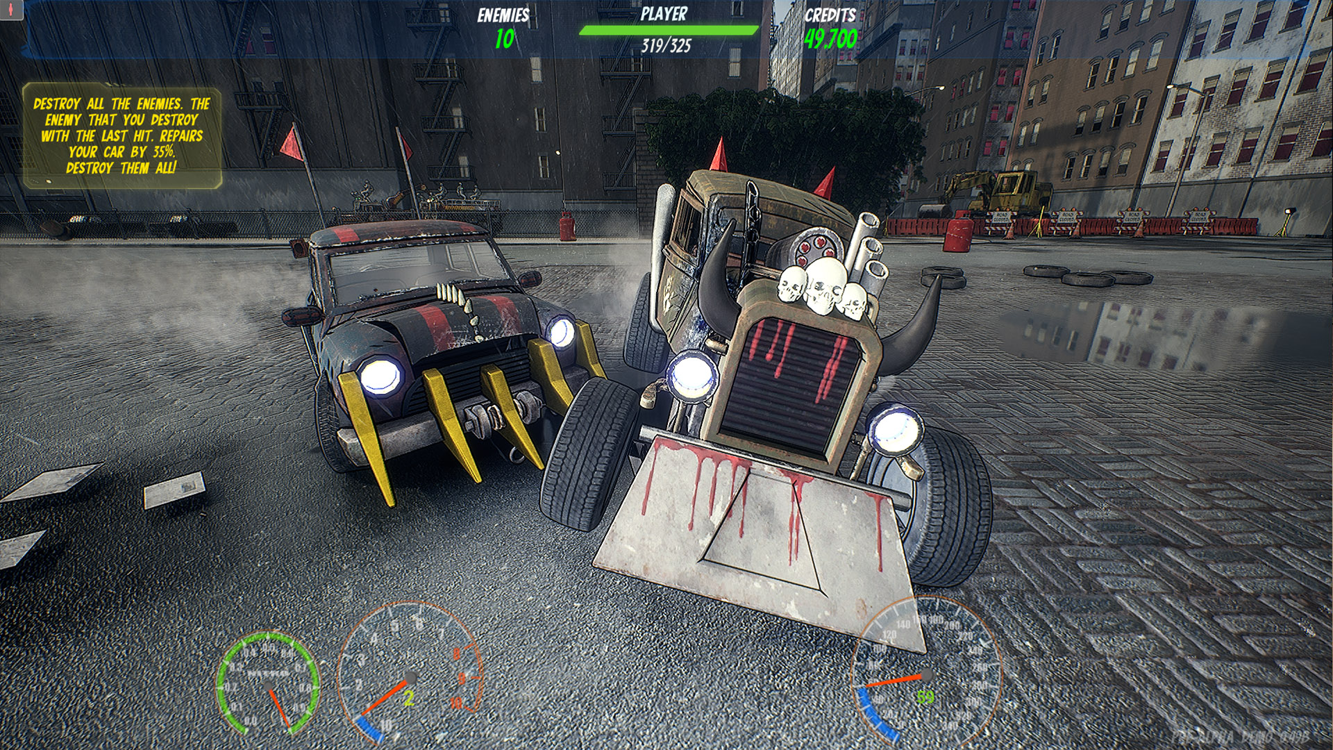 A thrilling, Carmageddon/Twisted metal-inspired roguelite game blending high-octane driving and action with strategic elements.