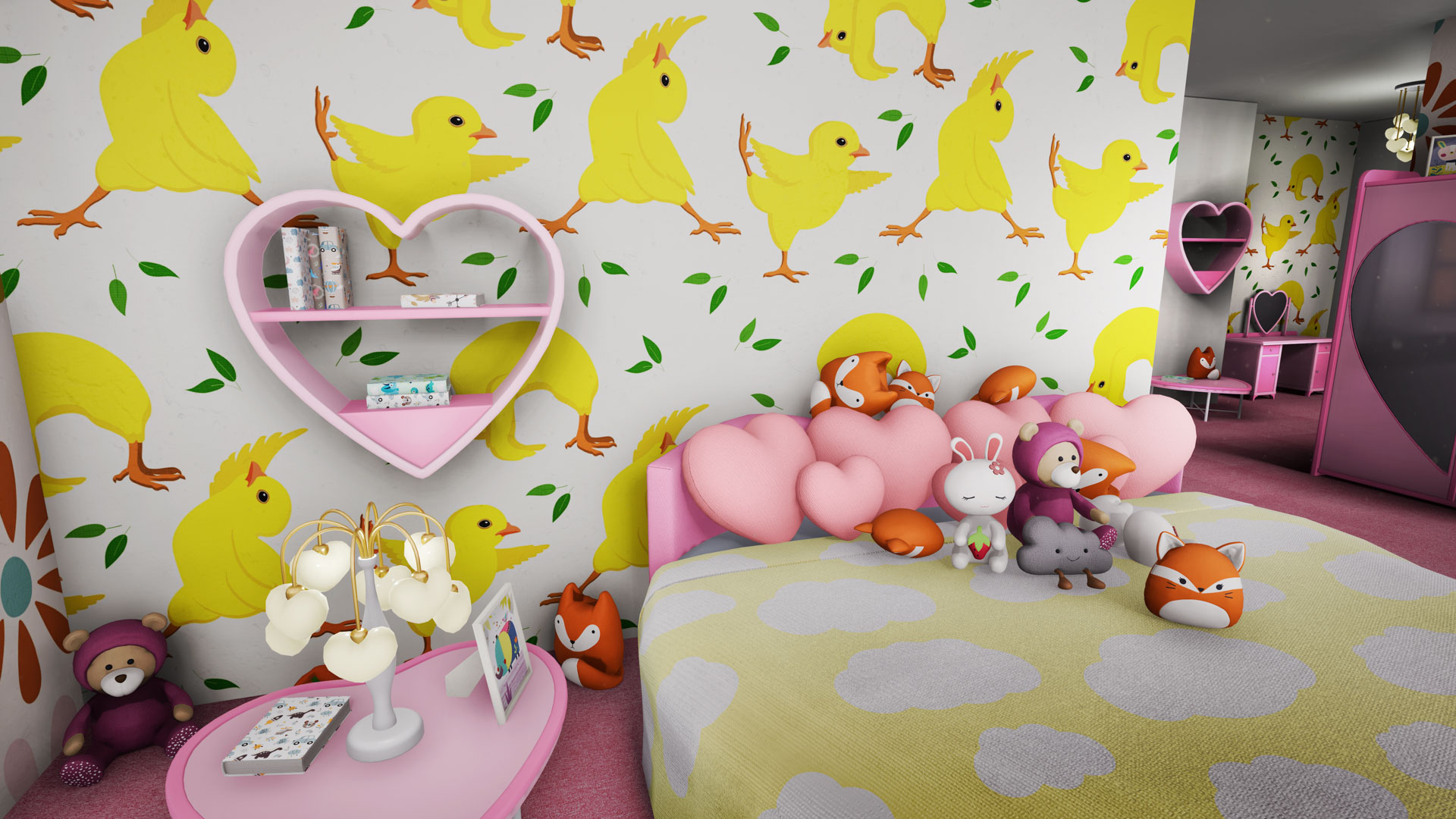 Give your hotel that youthful glow with the Kawaii Furniture set, packed with the cutest 53 items that will make any of your customers' heart melt. With its bright colors and playful patterns, life truly is all sunshine and rainbows!